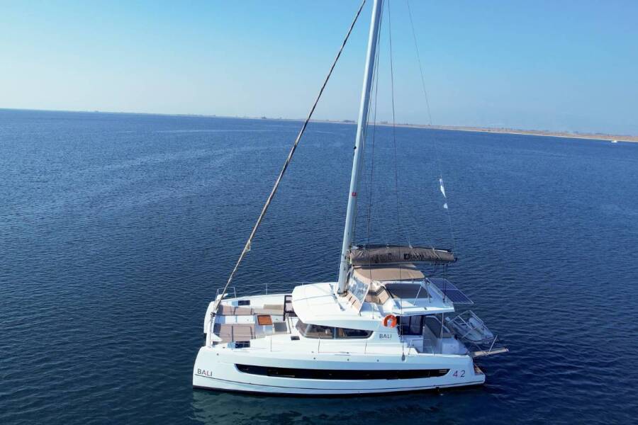 The Catamaran Bali 4.2 Kos 42.6 homeport is Preveza, Main Port, Greece. Built in 2022, and accommodates up to 8 + 1 persons in 4 cabins, and has 4 heads.
